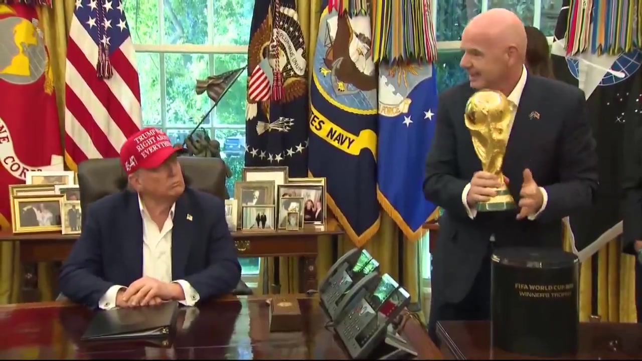 因凡蒂諾說可以摸摸大力神杯, 特朗普調(diào)侃:能保留嗎別指望還你