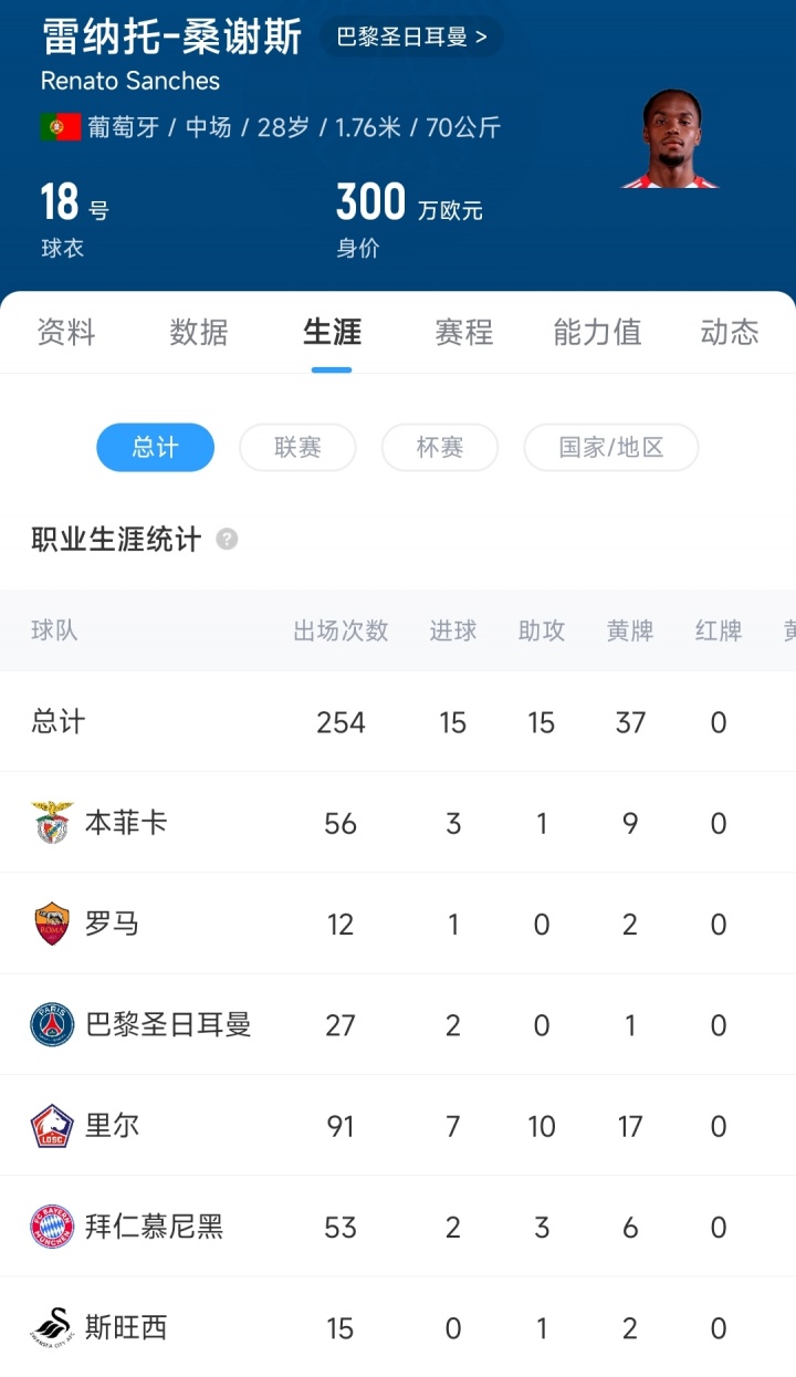 目前桑謝斯的德轉(zhuǎn)身價僅有300萬歐元,而在2016年桑謝斯隨葡萄牙歐洲杯奪冠,榮膺當(dāng)年金童獎時,18歲的桑謝斯的身價曾達到3000萬歐,并以3500萬歐元加盟拜仁。
