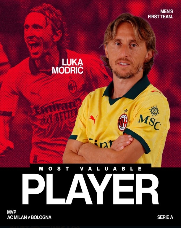 打進(jìn)唯一進(jìn)球,40歲莫德里奇當(dāng)選米蘭1-0博洛尼亞隊內(nèi)最佳