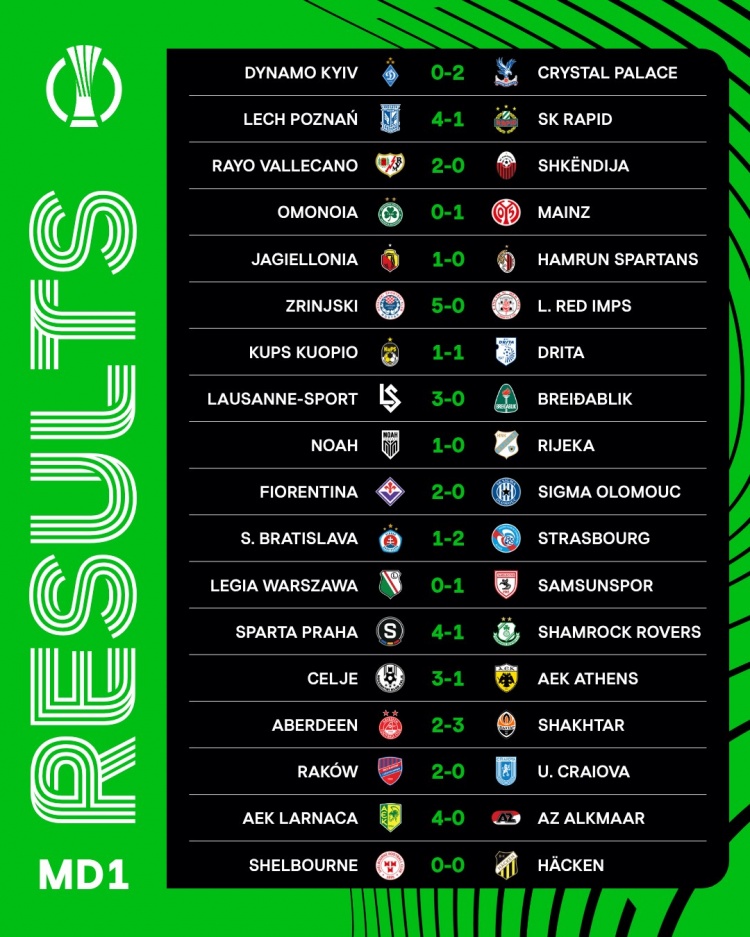 10月3日訊 歐協聯首輪比賽戰(zhàn)罷,水晶宮2-0擊敗基輔迪納摩,巴列卡諾、佛羅倫薩、美因茨取勝,阿爾克馬爾4球慘敗。