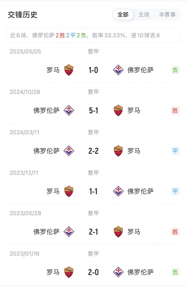 積分榜方面,羅馬4勝1負排在積分榜第三位;佛羅倫薩開局五輪不勝,排名倒數第四。
