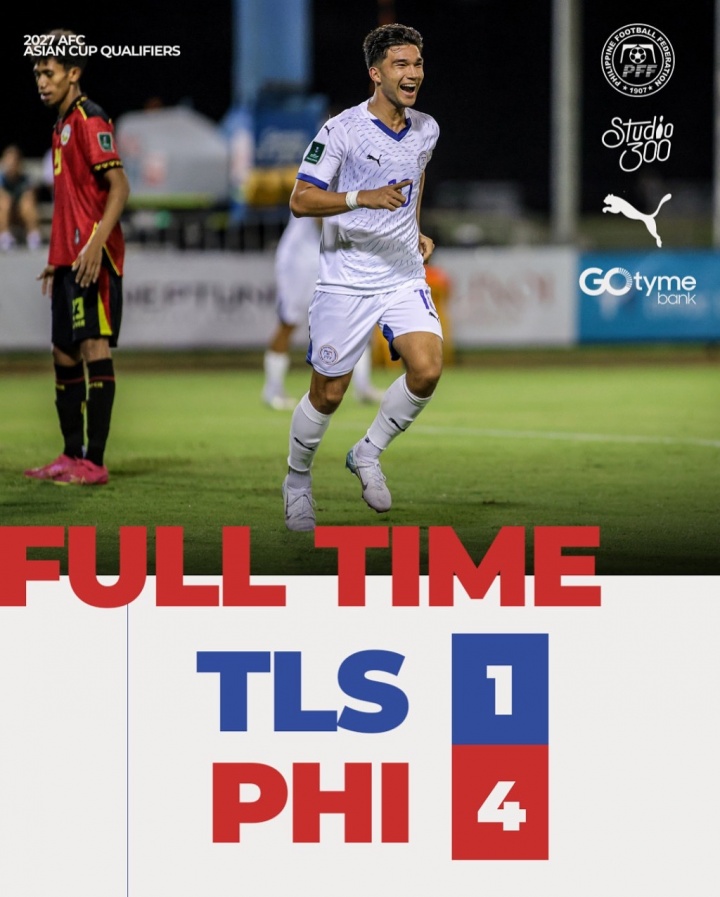 10月09日訊 在剛剛結(jié)束的一場(chǎng)亞洲杯預(yù)選賽中,菲律賓4-1完勝東帝汶,暫列小組第1。